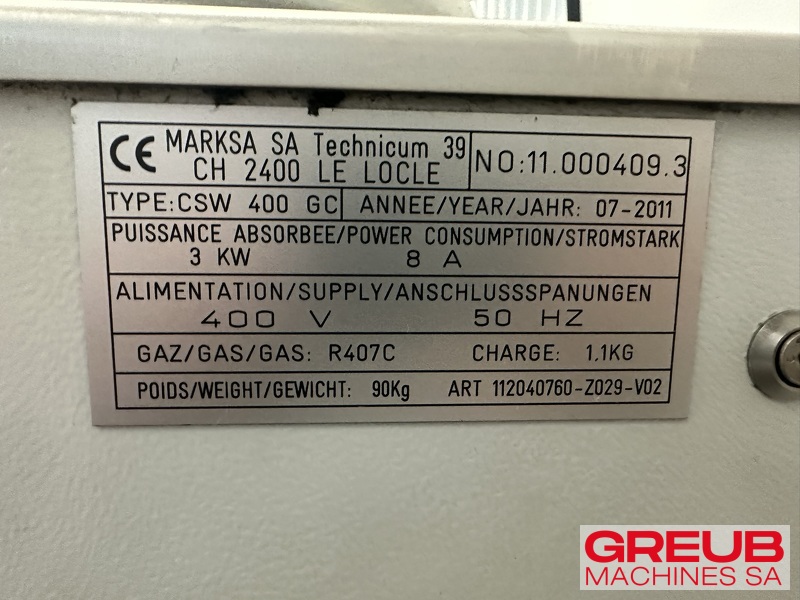 Kühler der Marke MARKSA CSW 400 GC gebraucht und bei Greub verfügbar. Unser Team berät Sie persönlich und begleitet Sie bei Ihrem Projekt. Kontaktieren Sie uns für weitere Informationen.