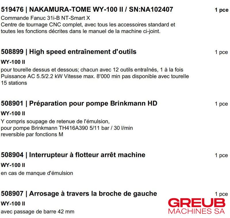 Tour cnc der Marke NAKAMURA TOME WY-100 II gebraucht und bei Greub verfügbar. Unser Team berät Sie persönlich und begleitet Sie bei Ihrem Projekt. Kontaktieren Sie uns für weitere Informationen.
