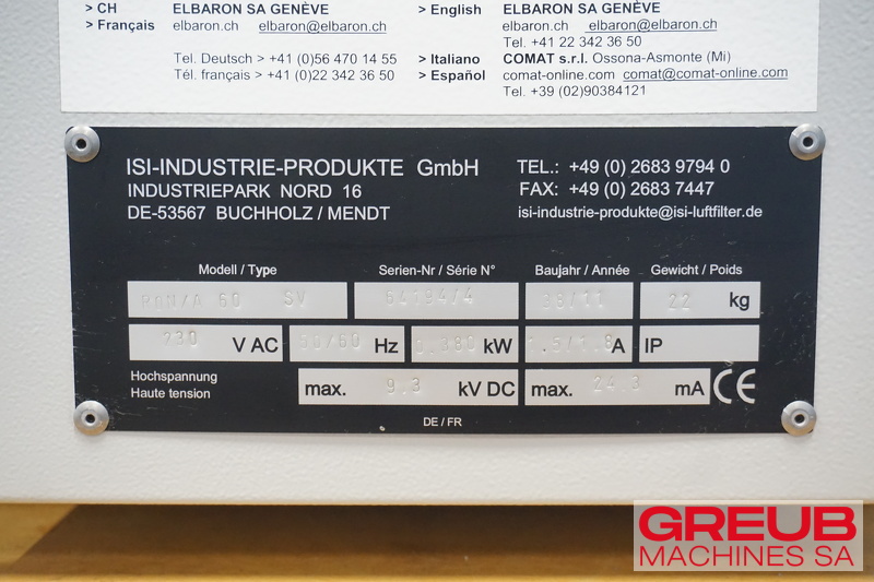 Oil mist extractor by ELBARON RON/A 60 SV second-hand and available at Greub. Our team provides expert advice and supports you throughout your project. Contact us for more information.