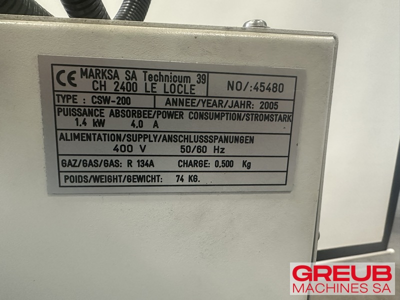 Refroidisseur de marque MARKSA CSW 200 d'occasion disponible chez Greub. Notre équipe vous renseigne et vous accompagne. Contactez-nous pour plus d’informations.